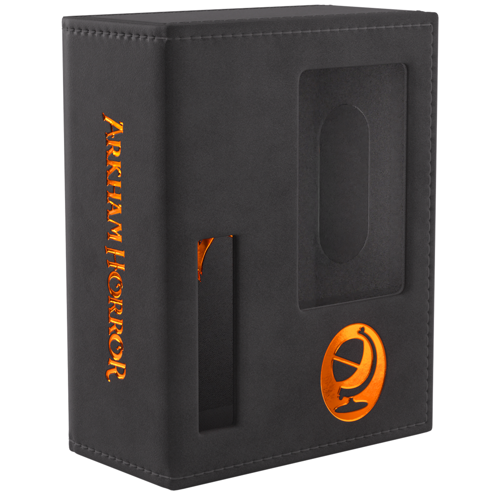 Con un elegante exterior en negro con detalles en foil de color, su nuevo aspecto encaja perfectamente con la atmósfera del juego. Esta caja premium para mazos con licencia oficial ha sido diseñada específicamente para satisfacer las necesidades de los jugadores de Arkham Horror: El juego de cartas.