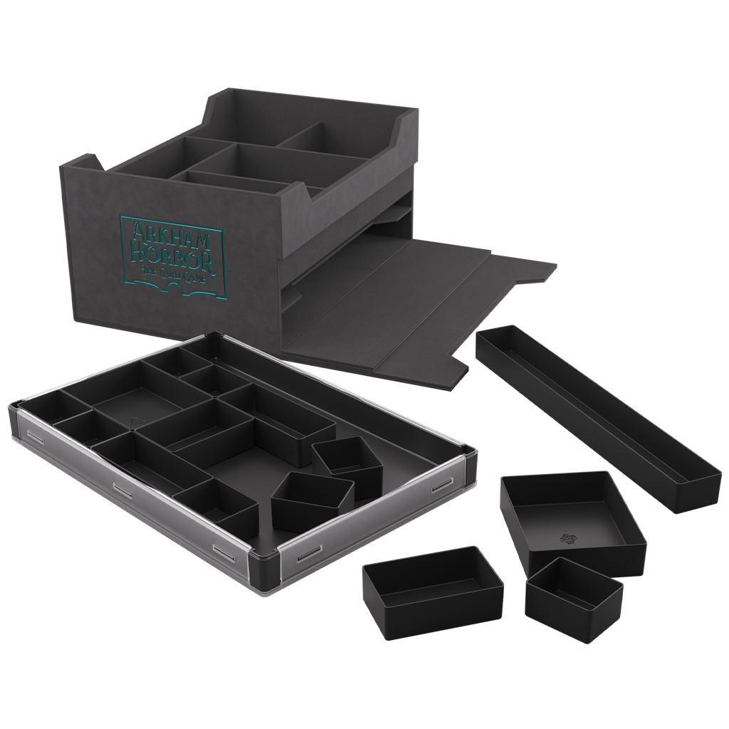 Diseñada específicamente para jugadores apasionados, ofrece amplio espacio para mazos de Investigador, más de 500 cartas enfundadas, la Bolsa de fichas y mucho más, además de un compartimento inferior para reglamentos y guías de campaña. Incluye también una edición exclusiva en color negro del Token Silo XL. Gracias al sistema convertible de Gamegenic, la cubierta magnética es extraíble y puede fijarse en la parte inferior para ahorrar espacio en la mesa. Simplifica tu preparación, optimiza tus partidas y sumérgete como nunca antes en los horrores de Arkham Horror.